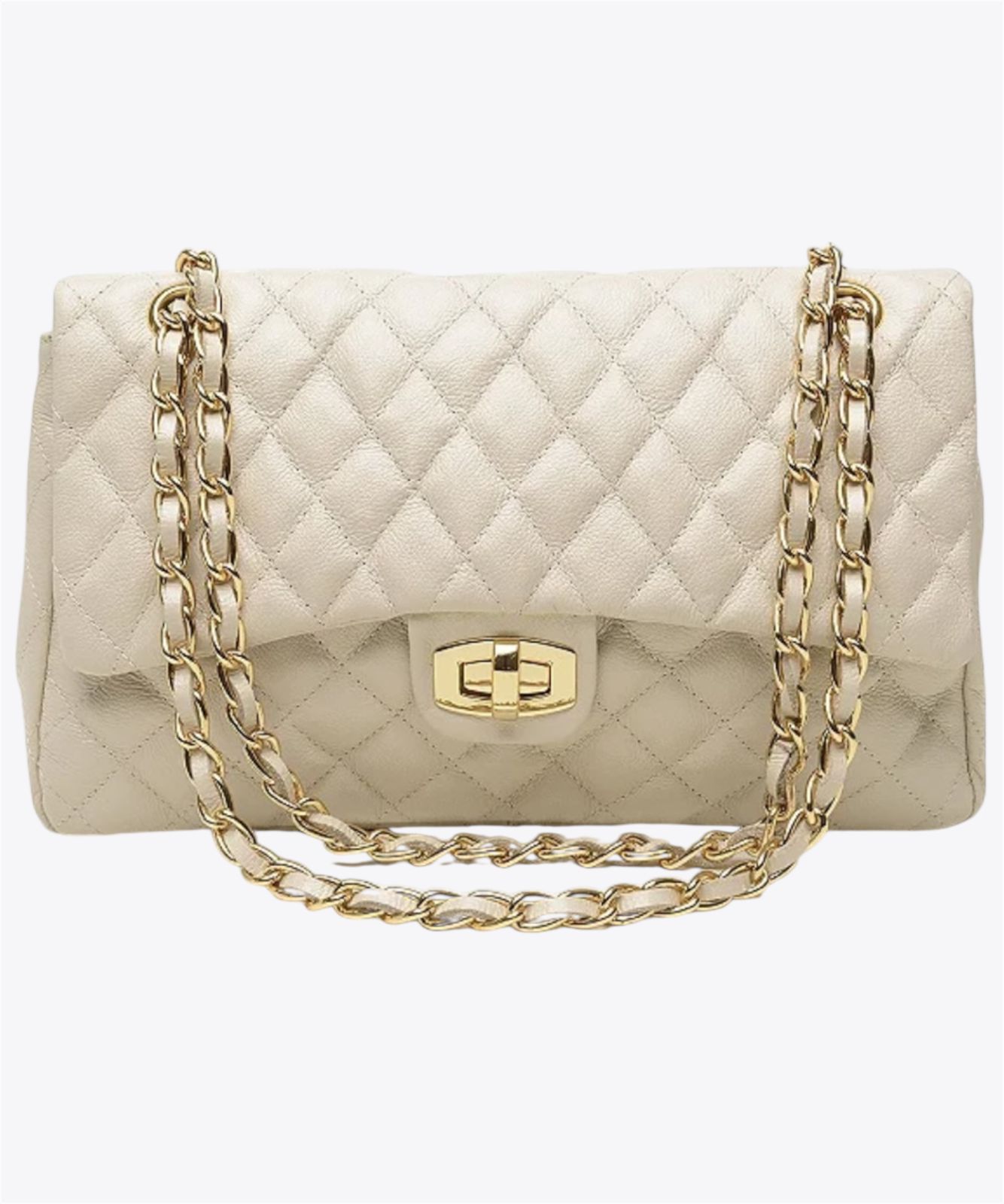 A tiracolo mistura o mood divertido e alegre com o toque elegante da alça de correntes. Na versao grande, é perfeita para carregar tudo por aí com estilo! Versátil, vai do look jeans e alfaiataria ao visual descontraído com vestido e tubinho chique.