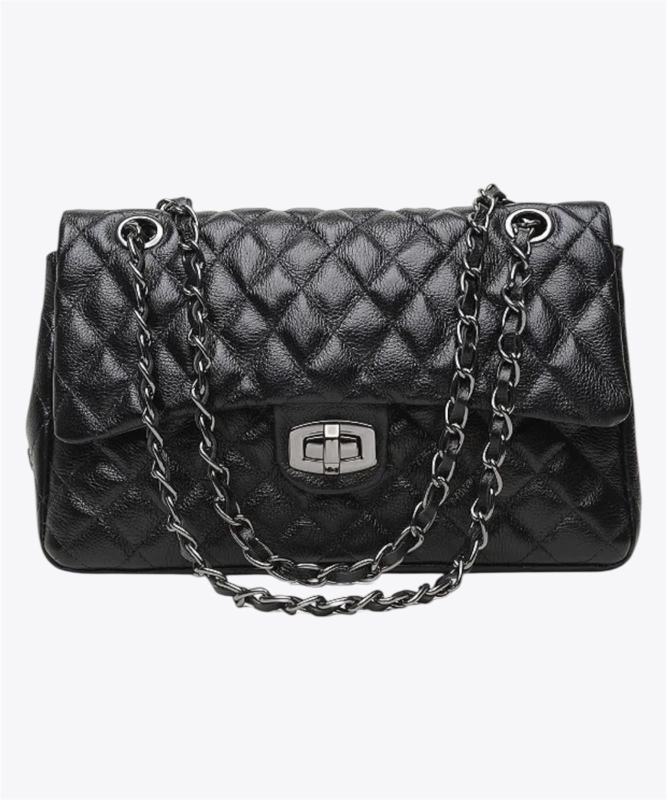 A tiracolo mistura o mood divertido e alegre com o toque elegante da alça de correntes. Na versao grande, é perfeita para carregar tudo por aí com estilo! Versátil, vai do look jeans e alfaiataria ao visual descontraído com vestido e tubinho chique.