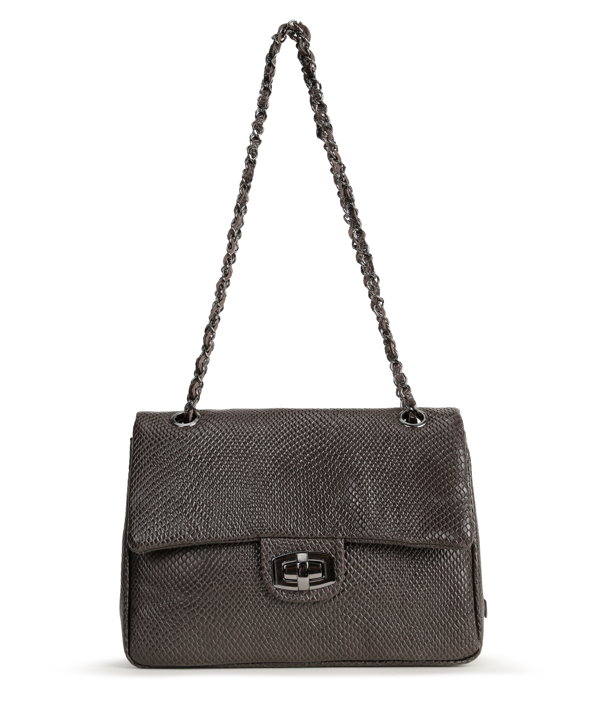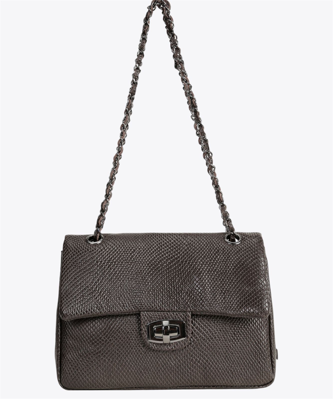 Cor: couro serpente café.
