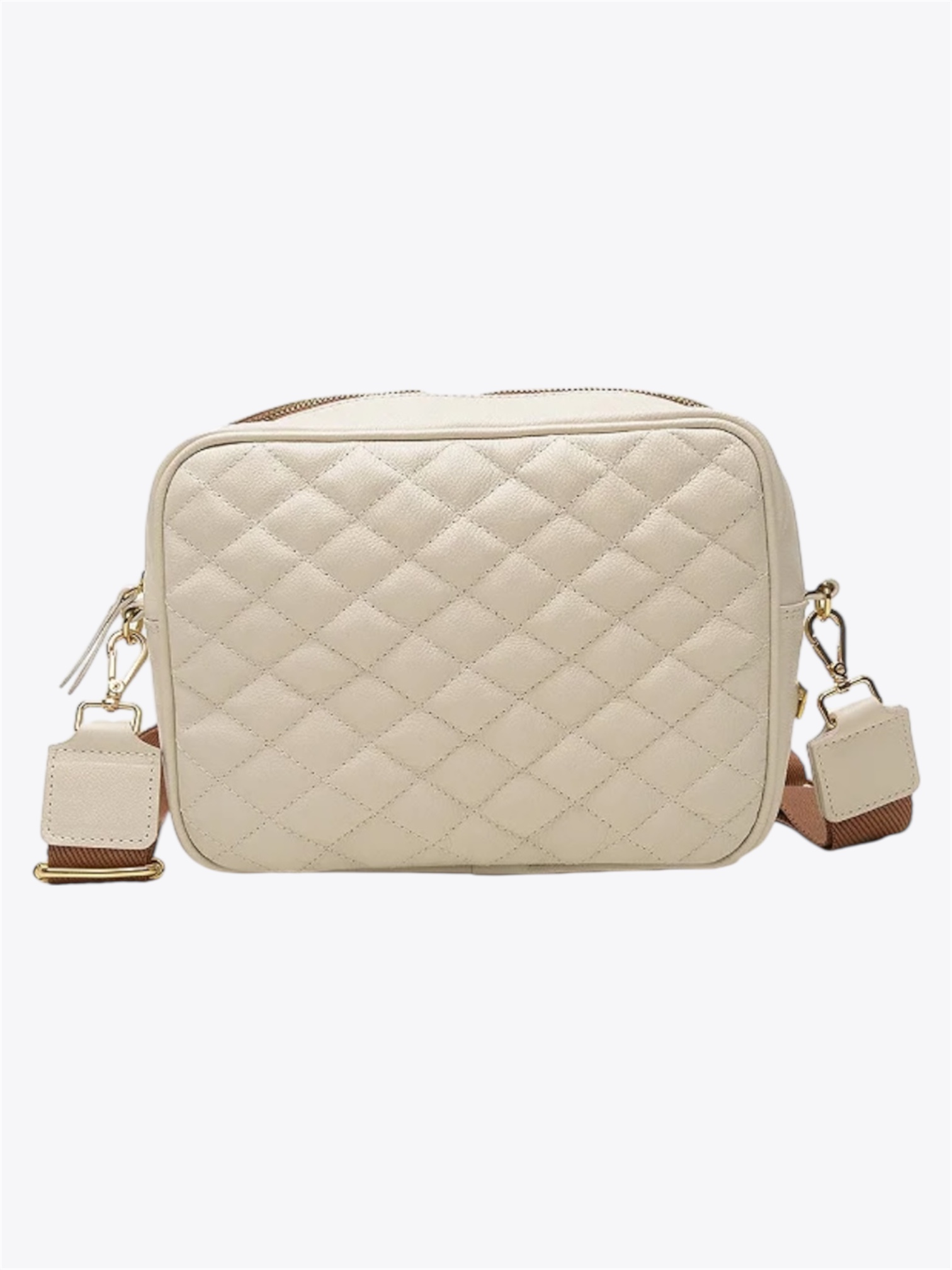 Bolsa wave em couro off white, tem o tamanho médio, feita em couro com leve brilho. Nos detalhes, ferragens contrastantes. A peça possui uma alça de gorgorão caramelo de ombro de 120 cm. O modelo conta também com várias divisões internas.