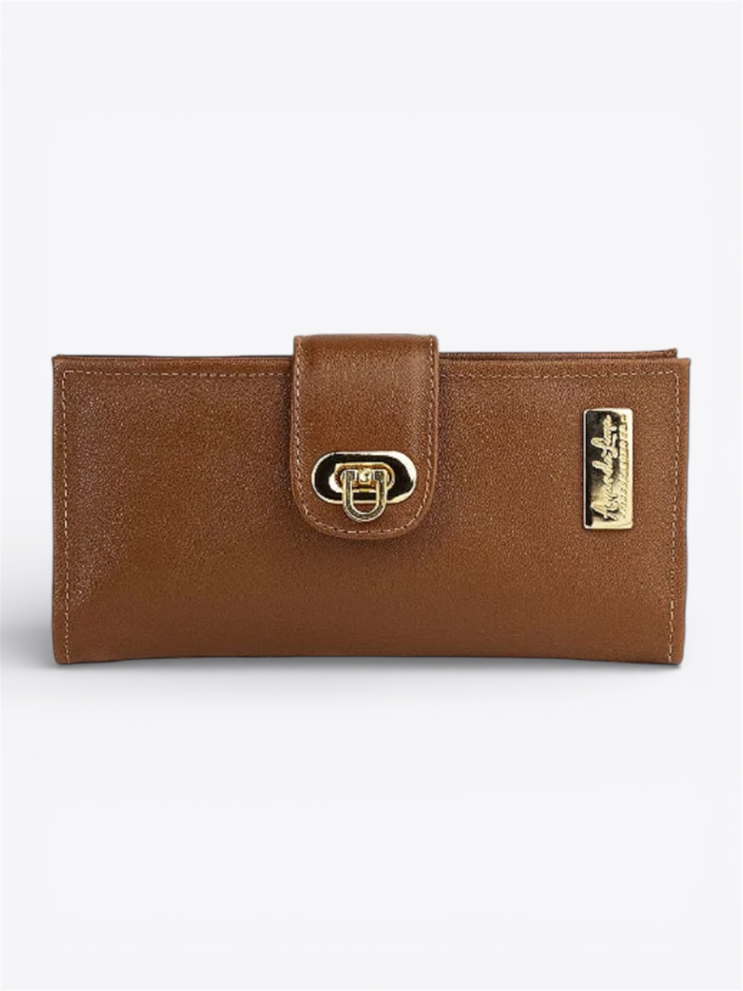 Carteira Pequena Couro Caramelo, fecho de encaixe em banho ouro, forro em tecido e couro, 12 compartimentos internos sendo 7 para cartões.