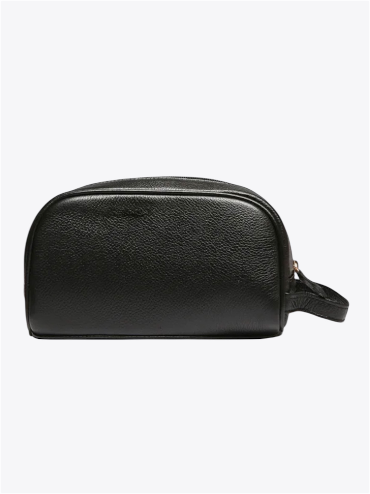 Necessaire em couro legítimo, modelo com formato retangular com as laterais arredondadas. Traz fecho superior em zíper com puxadores e alça de mão compacta. Ideal para viagens e transporte de itens menores como: maquiagem, produtos de higiene, cabelo e unha.