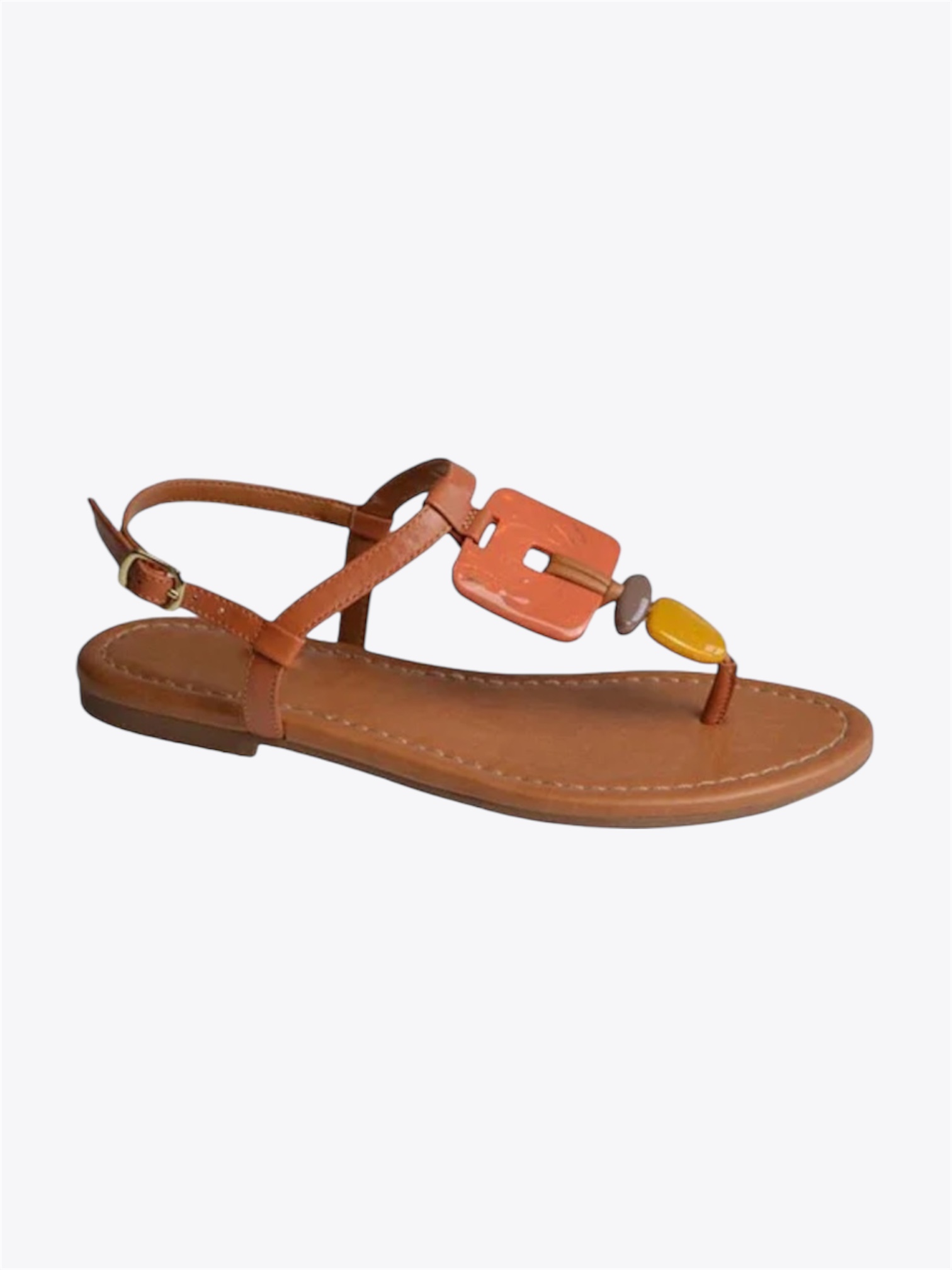 Material: couro legítimo com aplicações de resina detalhes nas cores: caramelo, laranja e amarelo.