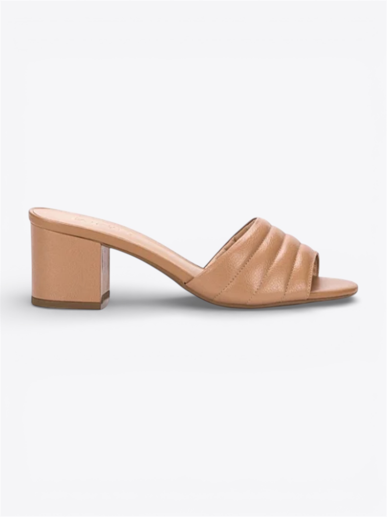 Tamanco em couro com salto baixo. Modelo de bico redondo, traz cabedal composto por uma tira grossa, com detalhes de pesponto no peito do pé. Aberta na parte traseira. O salto quadrado é confortavel e moderno.