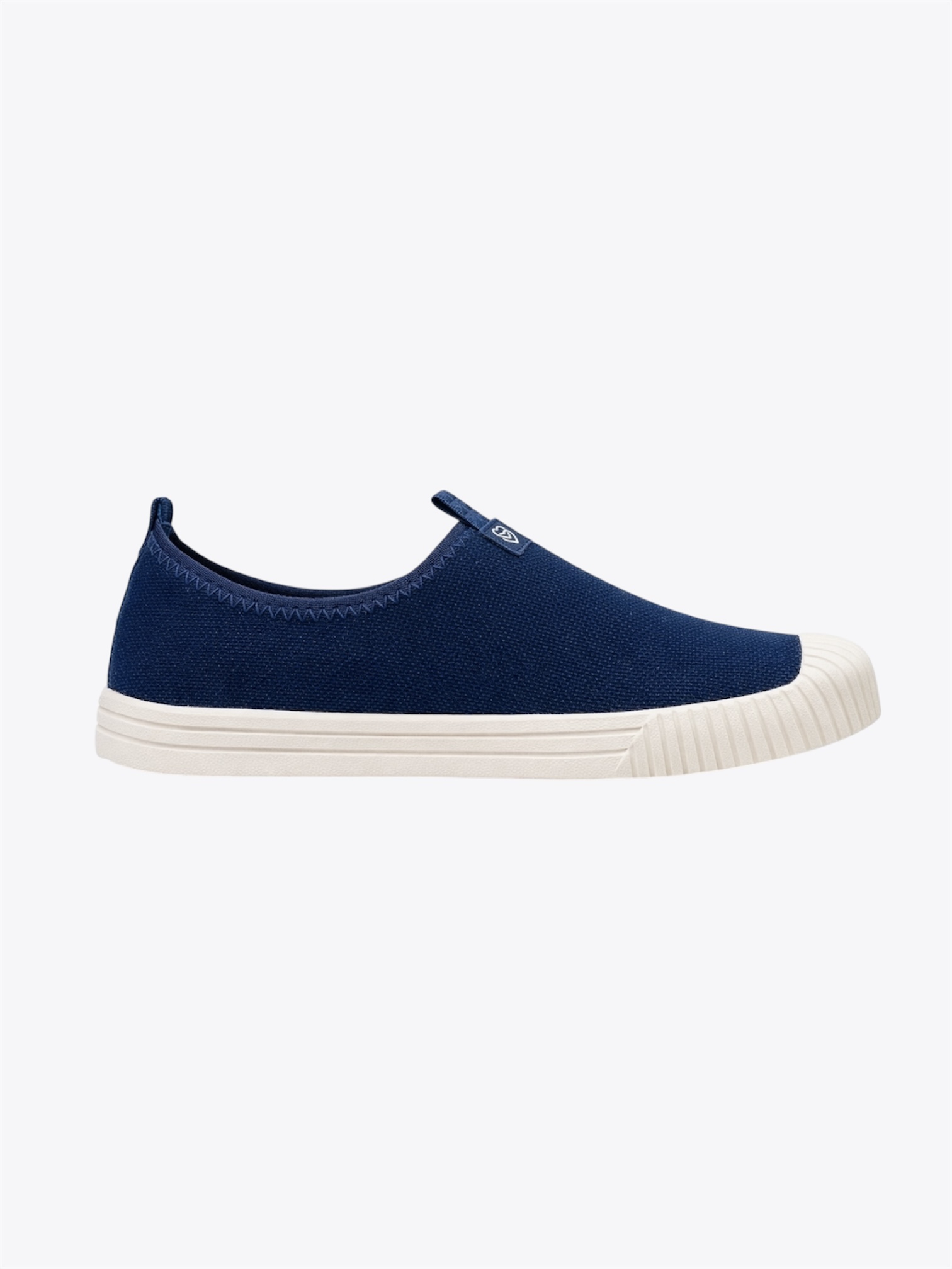 Tênis em tecido marinho, o modelo tem bico redondo. Traz contorno superior em destaque. Solado injetado de EVA e sobreposição em material emborrachado para proporcionar conforto aos pés.
